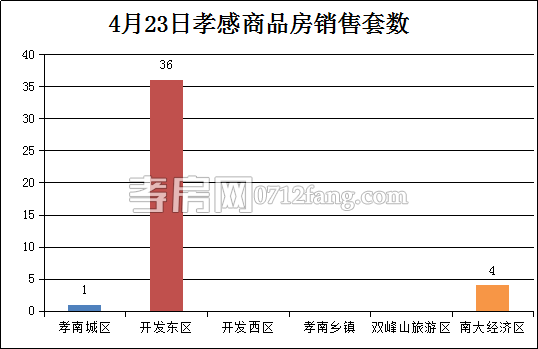 4月23日,全市的銷售套數(shù)為41套,其中孝南城區(qū)為1套,開發(fā)東區(qū)為36套,南大經(jīng)濟區(qū)為4套。