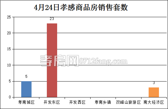 4月24日,全市的銷售套數(shù)為31套,其中孝南城區(qū)為5套,開發(fā)東區(qū)為23套,南大經(jīng)濟(jì)區(qū)為3套。