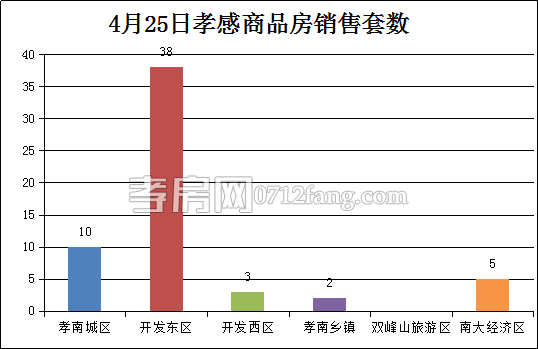 4月25日,全市的銷售套數(shù)為58套,其中孝南城區(qū)為10套,開發(fā)東區(qū)為38套,開發(fā)西區(qū)為3套,孝南鄉(xiāng)鎮(zhèn)為2套,南大經(jīng)濟區(qū)為5套。