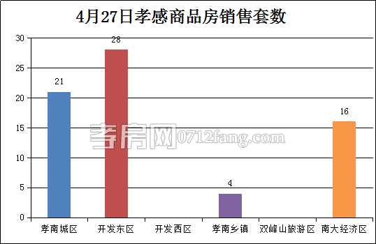 4月27日,全市的銷售套數(shù)為69套,其中孝南城區(qū)為21套,開發(fā)東區(qū)為28套,孝南鄉(xiāng)鎮(zhèn)為4套,南大經(jīng)濟區(qū)為16套。
