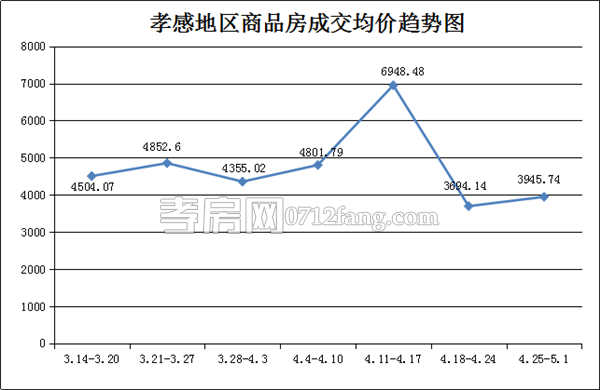 從2016年4月25日到2016年5月1日,孝感地區(qū)銷售總交易記錄438套,環(huán)比比上上周(274套)上漲約60%;成交均價3945.74元/平方米,與上上周(3694.14元/平方米)上漲約7%;成交面積50039.24平方米,環(huán)比上上周(37371.82平方米)上漲約34%;成交總金額環(huán)比上上周上漲約43%。