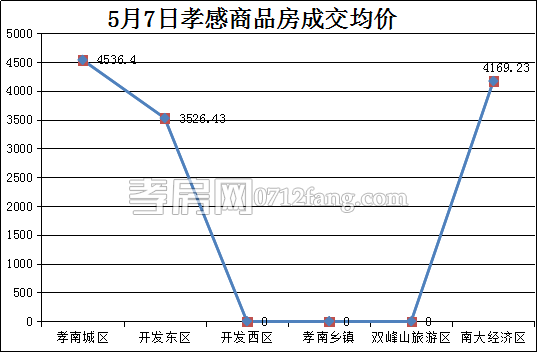 5月7日,全市的成交均價(jià)為3765.40元/㎡。其中孝南城區(qū)為4536.40元/㎡,開發(fā)東區(qū)為3526.43/㎡,南大經(jīng)濟(jì)區(qū)為4169.23元/㎡。