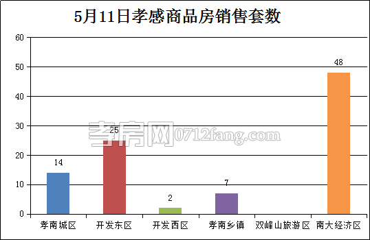5月11日,全市的銷售套數(shù)為96套,其中孝南城區(qū)為14套,開發(fā)東區(qū)為25套,開發(fā)西區(qū)為2套,孝南鄉(xiāng)鎮(zhèn)為7套,南大經(jīng)濟區(qū)為48套。