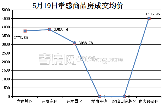 5月19日,全市的成交均價(jià)為3850.48元/㎡。其中孝南城區(qū)為3775.09元/㎡,開發(fā)東區(qū)為3852.14元/㎡,開發(fā)西區(qū)為3088.78元/㎡,南大經(jīng)濟(jì)區(qū)為4506.95元/㎡。