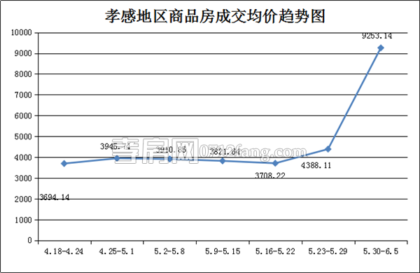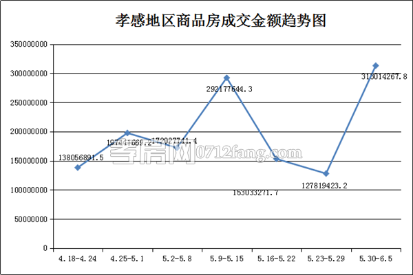 據(jù)孝房網(wǎng)數(shù)據(jù)研究顯示,從2016年5月30日到2016年6月5日,孝感地區(qū)銷售總交易記錄296套,面積為33827.91平方米,金額為313014267.82元,均價為9253.14元/平方米。