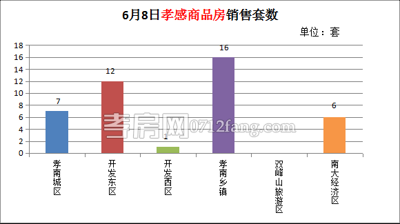 6月8日,全市的銷售套數(shù)為42套,其中孝南城區(qū)為7套,開發(fā)東區(qū)為12套,孝南鄉(xiāng)鎮(zhèn)為16套,南大經(jīng)濟(jì)區(qū)為6套。