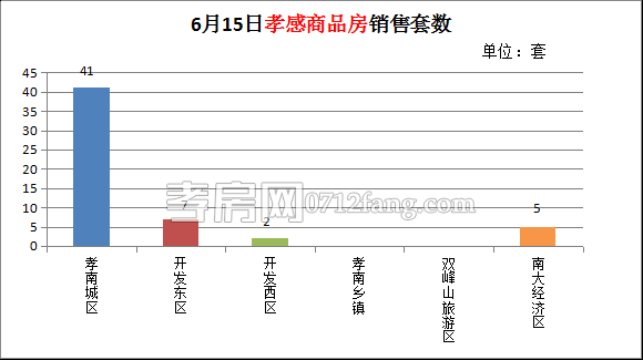 6月15日,全市的銷售套數(shù)為55套,其中孝南城區(qū)為41套,開(kāi)發(fā)東區(qū)為7套,開(kāi)發(fā)西區(qū)為2套,南大經(jīng)濟(jì)區(qū)為5套。
