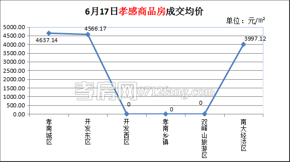 6月17日,全市的成交均價(jià)為4513.34元/㎡。其中孝南城區(qū)為4637.14元/㎡,開(kāi)發(fā)東區(qū)為4566.17元/㎡,南大經(jīng)濟(jì)區(qū)為3997.12元/㎡。