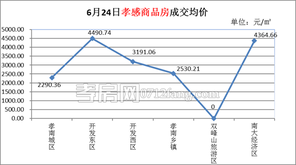 6月24日,全市的成交均價(jià)為3292.02元/㎡。其中孝南城區(qū)為2290.36元/㎡,開(kāi)發(fā)東區(qū)為4490.74元/㎡,開(kāi)發(fā)西區(qū)為3191.06元/㎡,孝南鄉(xiāng)鎮(zhèn)為2530.21元/㎡,南大經(jīng)濟(jì)區(qū)為4364.66元/㎡。
