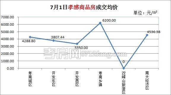 7月1日,全市的成交均價為4236.66元/㎡。其中孝南城區(qū)為4288.80/㎡,開發(fā)東區(qū)為3807.44元/㎡,孝南鄉(xiāng)鎮(zhèn)為95.59元/㎡,南大經(jīng)濟區(qū)為747.04/㎡。