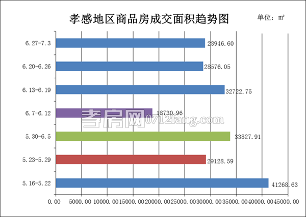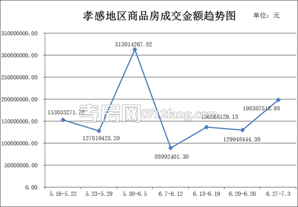 據(jù)孝房網(wǎng)數(shù)據(jù)研究統(tǒng)計,從2016年6月26日到2016年7月3日,孝感地區(qū)銷售總交易記錄238套,面積為28946.60平方米,金額為198307513.98元,均價為6850.85元/平方米。