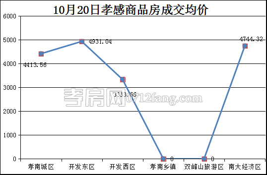 10月20日,全市的成交均價為4842.02元/㎡。其中孝南城區(qū)為4413.56元/㎡,開發(fā)東區(qū)為4931.04元/㎡,開發(fā)西區(qū)為3333.66元/㎡,南大經濟區(qū)4744.32元/㎡。