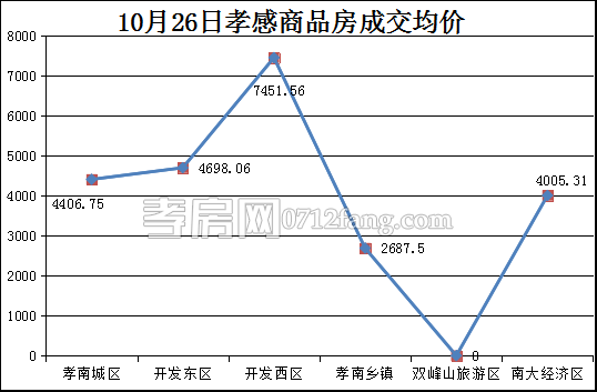 10月26日,全市的成交均價(jià)為4099.90元/㎡。其中孝南城區(qū)為4406.75元/㎡,開發(fā)東區(qū)為4698.06元/㎡,開發(fā)西區(qū)為7451.56元/㎡,孝南鄉(xiāng)鎮(zhèn)為2687.50元/㎡,南大經(jīng)濟(jì)區(qū)4005.31元/㎡。
