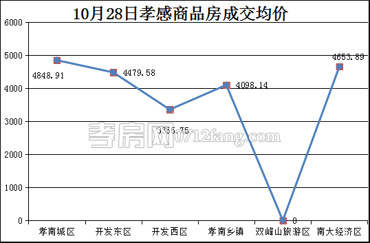 10月28日,全市的成交均價(jià)為4505.12元/㎡。其中孝南城區(qū)為4848.91元/㎡,開發(fā)東區(qū)為4479.58元/㎡,開發(fā)西區(qū)為3355.75元/㎡,孝南鄉(xiāng)鎮(zhèn)為4098.14元/㎡,南大經(jīng)濟(jì)區(qū)4653.89元/㎡。