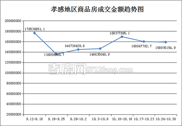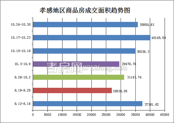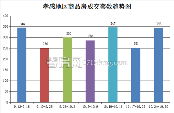 據(jù)孝房網(wǎng)數(shù)據(jù)研究顯示,從2016年10月24日到2016年10月30日,孝感地區(qū)銷售總交易記錄344套,面積為35850.83