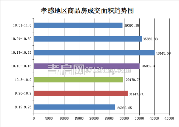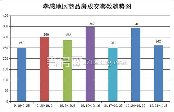 據(jù)孝房網(wǎng)數(shù)據(jù)研究顯示,從2016年10月31日到2016年11月6日,孝感地區(qū)銷售總交易記錄262套,面積為29390.25