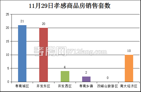 11月29日,全市的銷售套數(shù)為57套,孝南城區(qū)為21套,開發(fā)東區(qū)為20套,開發(fā)西區(qū)為4套,孝南鄉(xiāng)鎮(zhèn)為2套,南大經(jīng)濟(jì)區(qū)為10套。