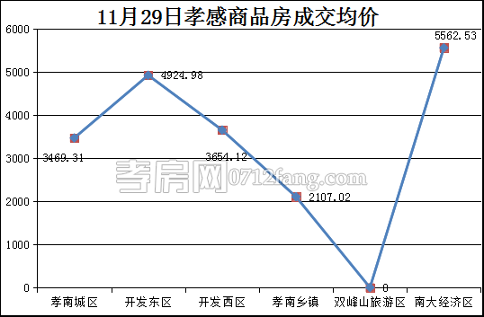 11月29日,全市的成交均價(jià)為4309.89元/㎡。其中孝南城區(qū)為3469.31元/㎡,開發(fā)東區(qū)為4924.98元/㎡,開發(fā)西區(qū)為3654.12元/㎡,孝南鄉(xiāng)鎮(zhèn)為2107.02元/㎡,南大經(jīng)濟(jì)區(qū)5562.53元/㎡。