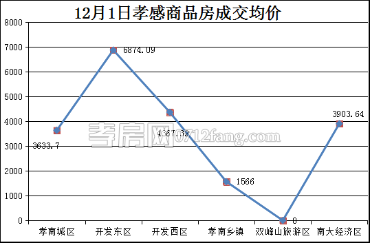 12月1日,全市的成交均價為4267.58元/㎡。其中孝南城區(qū)為3633.70元/㎡,開發(fā)東區(qū)為6874.09元/㎡,開發(fā)西區(qū)為4367.32元/㎡,孝南鄉(xiāng)鎮(zhèn)為1566.00元/㎡,南大經(jīng)濟(jì)區(qū)3903.64元/㎡。