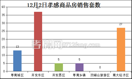 12月2日,全市的銷售套數為87套,孝南城區(qū)為13套,開發(fā)東區(qū)為37套,開發(fā)西區(qū)為5套,孝南鄉(xiāng)鎮(zhèn)為5套,南大經濟區(qū)為27套。