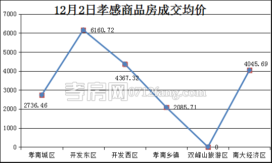12月2日,全市的成交均價為4622.77元/㎡。其中孝南城區(qū)為2736.46元/㎡,開發(fā)東區(qū)為6160.72元/㎡,開發(fā)西區(qū)為4367.32元/㎡,孝南鄉(xiāng)鎮(zhèn)為2085.71元/㎡,南大經濟區(qū)4045.69元/㎡。