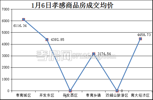 1月6日,全市的成交均價(jià)為5102.17元/㎡。其中孝南城區(qū)為6116.34元/㎡,開(kāi)發(fā)東區(qū)為4392.85元/㎡,孝南鄉(xiāng)鎮(zhèn)為3174.54元/㎡,南大經(jīng)濟(jì)區(qū)4458.73元/㎡。