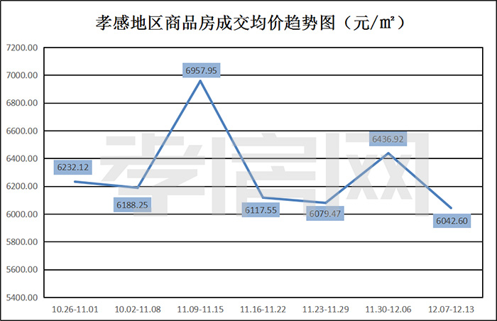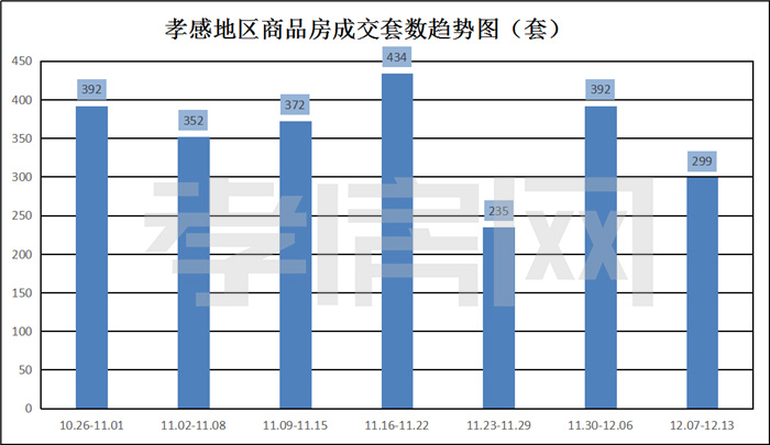 ? ? ? ?據(jù)孝房網(wǎng)數(shù)據(jù)研究顯示,從2020年12月07日到12月13日 ,孝感地區(qū)銷售總交易記錄299套,建面約35654.43平方米,金額為215445295.4元,均價(jià)為6042.60元/平方米。