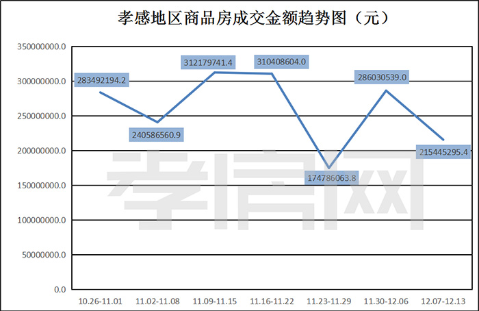 孝感地區(qū)商品房成交金額趨勢圖